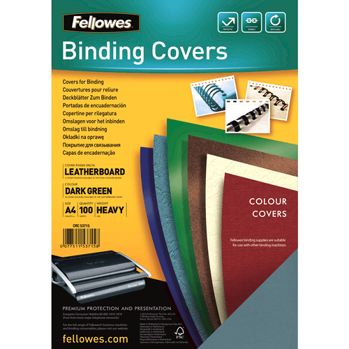 Tags: Fellowes, A4, LEATHERBOARD, COVERS, GREEN, 100PK, (FSC)